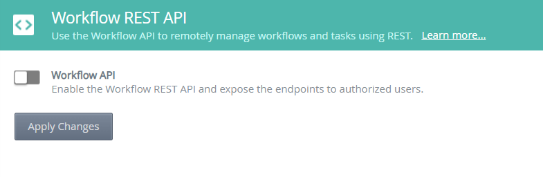 You must turn on the Workflow API feature before using the service. Click the Slider to activate the Workflow REST API preview.