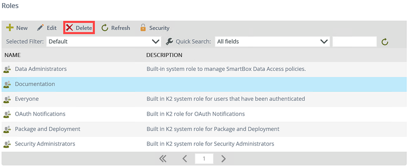 - When you delete a role in Management, the role is removed from the roles list, but behind the scenes the role is marked as disabled and is still refreshed and cached by the system. This is by design to prevent workflow instances that use the role from entering an error state
