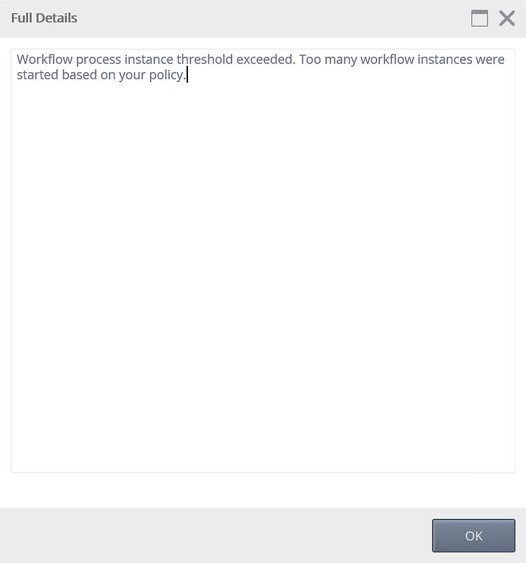 - To view the full details of the error, select the workflow instance and click Show Details.