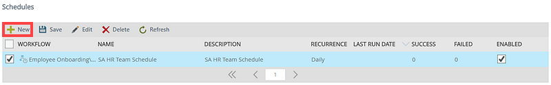 - Click New from the Schedules view.