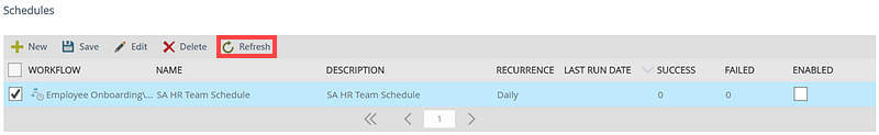 | Refresh | Click Refresh to refresh the list of schedules. |