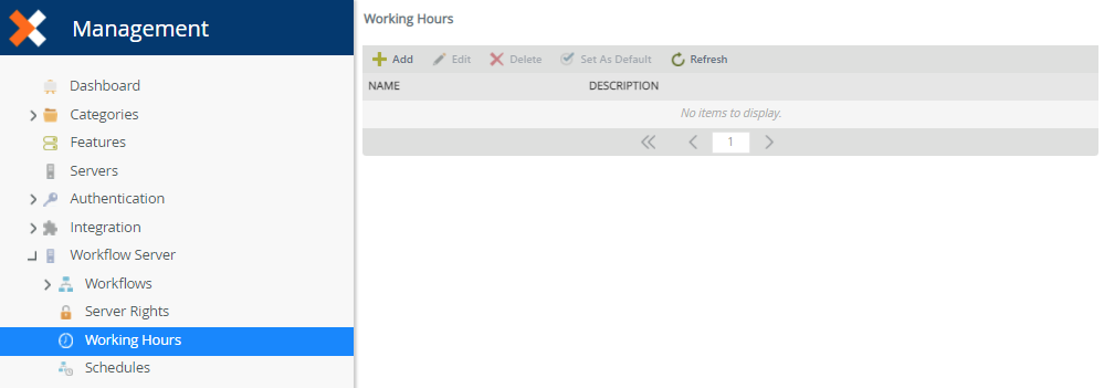 Follow these steps to set a working hour zone as the default zone, which means that this zone is automatically applied unless the workflow designer selects a different zone while building the workflow: