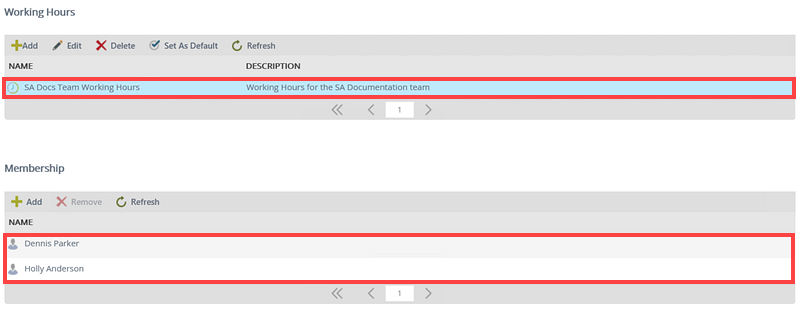 | Name | The name for the configured working hour zone. Type a value in the field provided. |