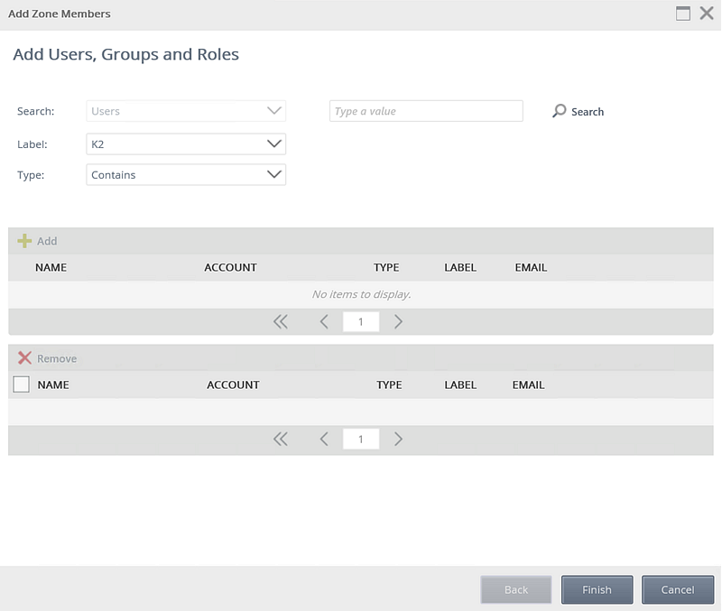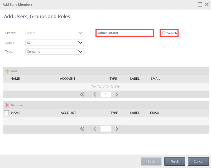 - The user is now listed in the second view. You can add multiple users by doing a new search and clicking Add again.
