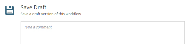 | Type a comment | Specify the text to display for the comment. This is useful to see what changes have been made and when trying to troubleshoot issues with the workflow. You can enter up to a maximum of 128 characters. Special characters are not allowed and are not saved. This field is optional. |