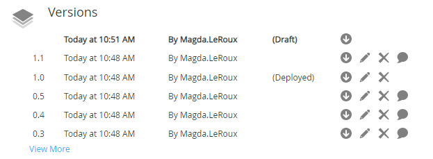 | Type | The type of version such as Draft (minor version) or Deployed (major version). |