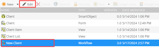 - To edit this 'restored' version of the workflow (version 3.0 in this example), select it and click Edit.
