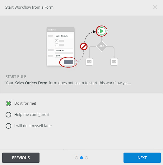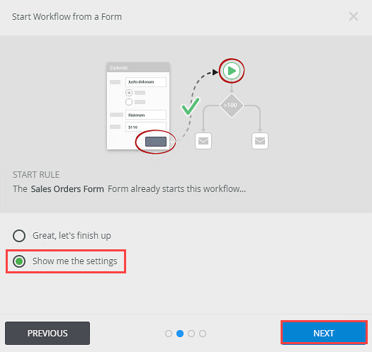 Example of a workflow configured to start with a form