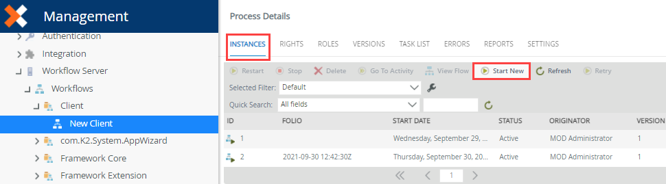 Specific rights are needed to start a workflow manually. For more information on these rights, see the Server Rights topic.
