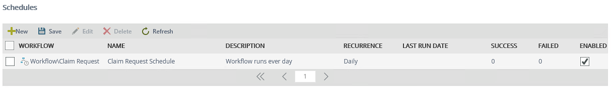 For detailed information on how to Save, Edit, Delete or Refresh Workflow Schedules, see the Schedules topic.