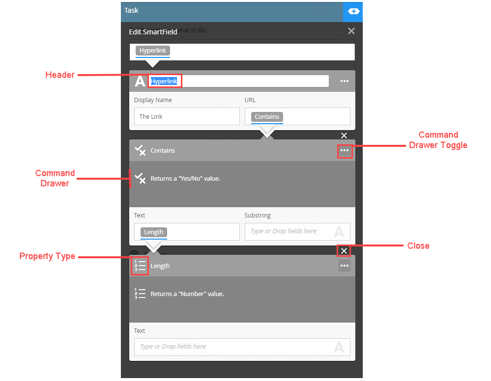 Use the X button to close the Smartfield Composer. In this example, click Close to return to the Task tab.