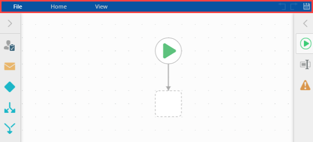 The Ribbon contains tools and commands that you use to create workflows in the Workflow Designer. These commands are located within the following tabs on the ribbon:
