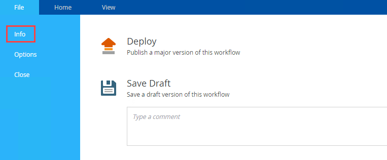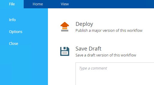 - From the Workflow Designer ribbon select the File tab.