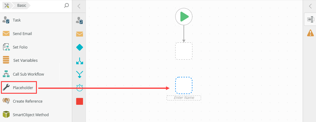- From the Toolbox click the Basic category, and then click and drag the Placeholder step onto the canvas.