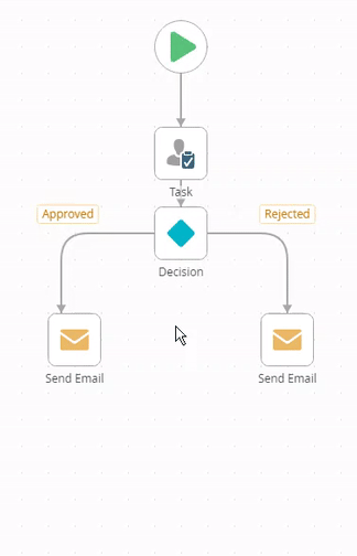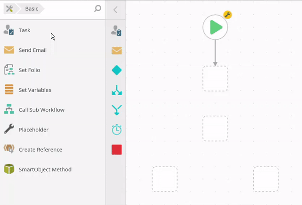 You can start building your workflow on the canvas, adding placeholder steps for paths and processes to tweak and configure at a later stage. Replace these placeholder steps by any step from the Toolbox by dragging the selected step onto the Placeholder step.