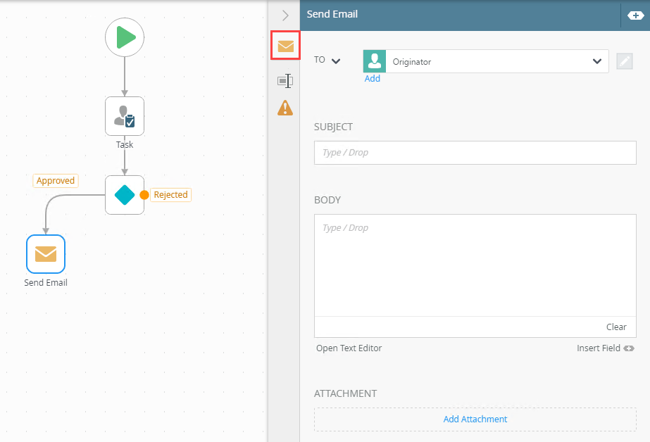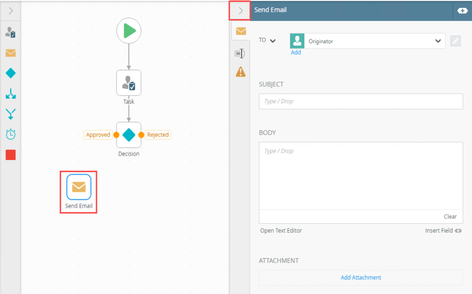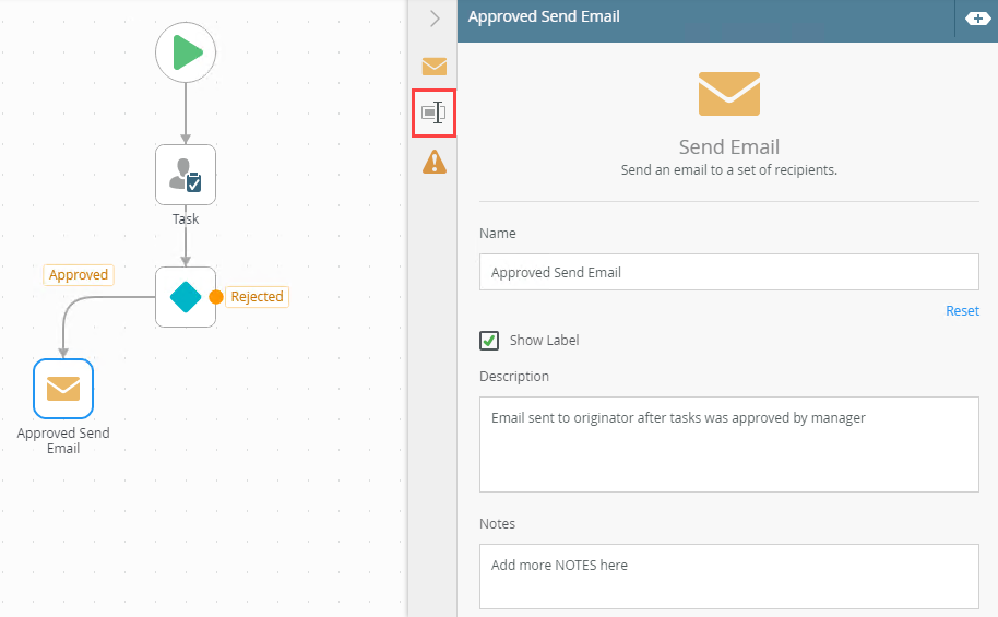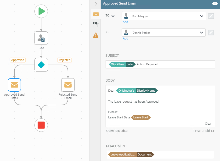 Note that you should use escalations to send task reminders and expiration notices instead of using the Send Email step, but there may be scenarios where using the Send Email step is a better option.
