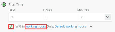 - Check the Within Working Hours Only check box to ensure the task expires after the set time within the specified working hours. Click the working hours link to edit or add working hours.