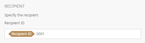 - In the Recipient section add the Recipient ID. Type values or create dynamic values by dragging Functions,