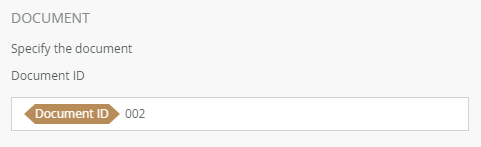 - In the Document section, add the Document ID. Type values or create dynamic values by dragging Functions,
