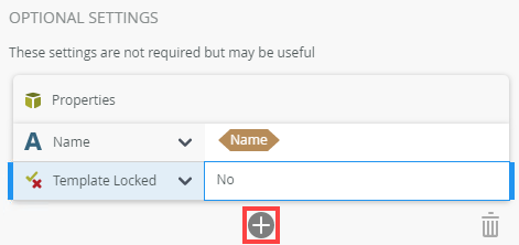 - Configure the Optional Settings. These settings are not required but it may be useful to configure them. Click Add to add properties. Type values or create dynamic values by dragging Functions,
