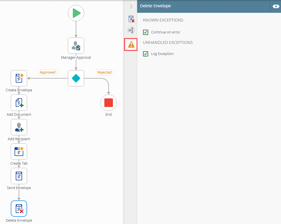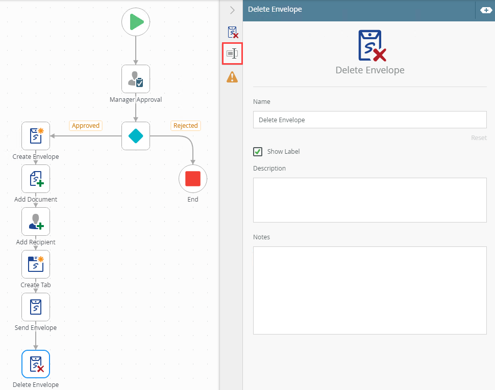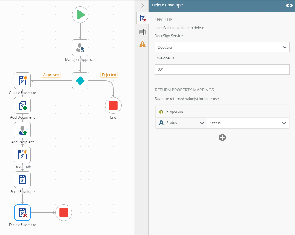 Example of a Delete Envelope step in a workflow