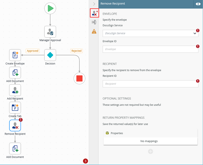 Use the Remove Recipient step to remove a recipient from a DocuSign envelope.