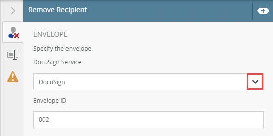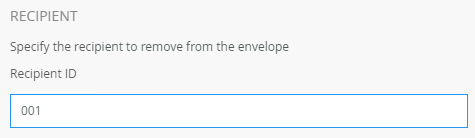 - Specify which recipient you need to remove from the envelope in the Recipient ID field. Type values or create dynamic values by dragging Functions,