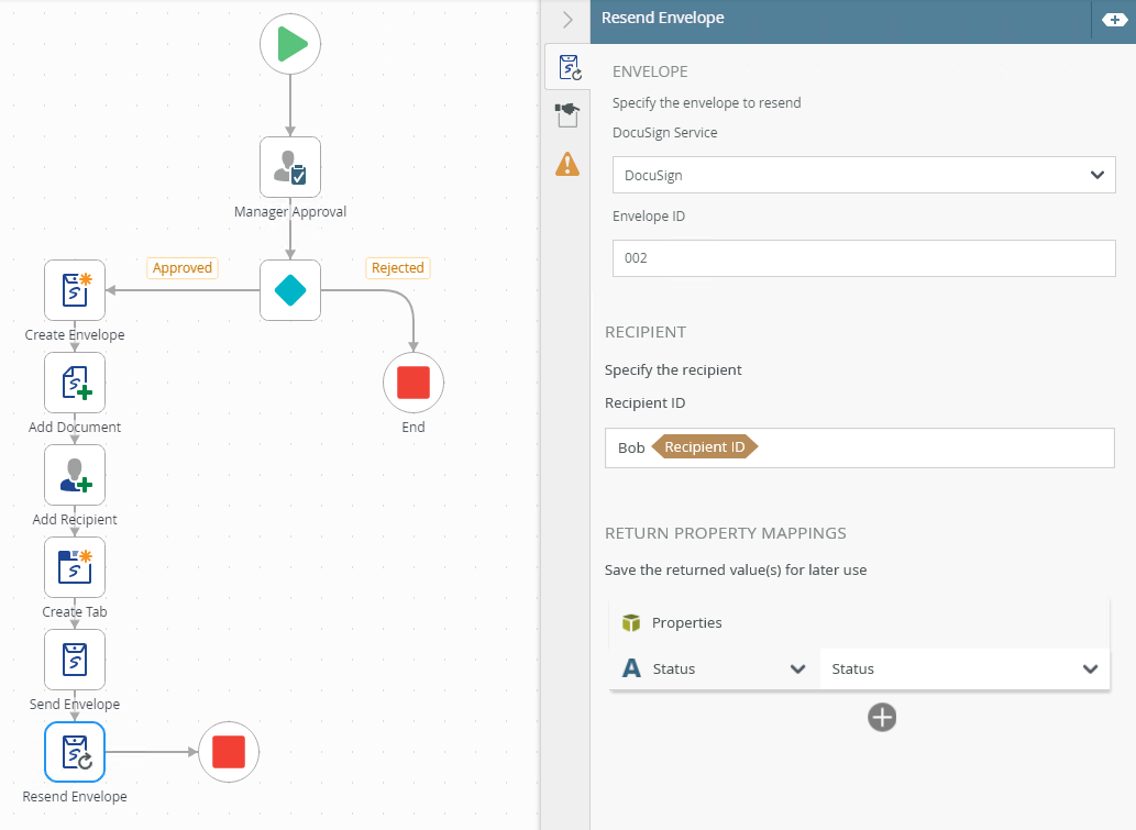 Use the Resend Envelope step to resend a DocuSign envelope to a recipient.