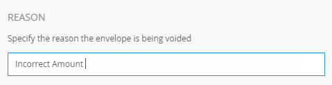 - Specify the Reason for voiding the envelope. Type values or create dynamic values by dragging Functions,