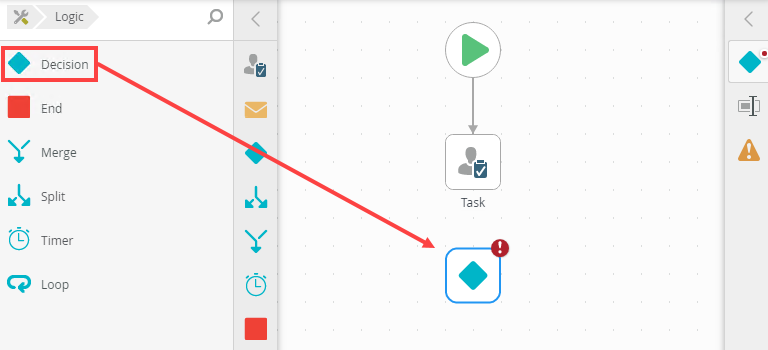 - From the Toolbox click the Logic category, and then click and drag the Decision step onto the canvas.