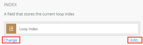 - The Loop Index variable is created. Click the Edit link to change the Loop Index label. Click the Change link to select another index.