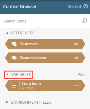 | List Item | This is a reference to a current item in the list and automatically gets created when the list is selected. You can use this in your Loop steps to read details about the specific item being processed in the loop. | Click the Edit link to change the List Item label. |