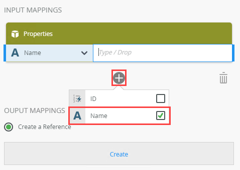 - From the Input Mappings section, click Add and select the property. In this example, select Name.