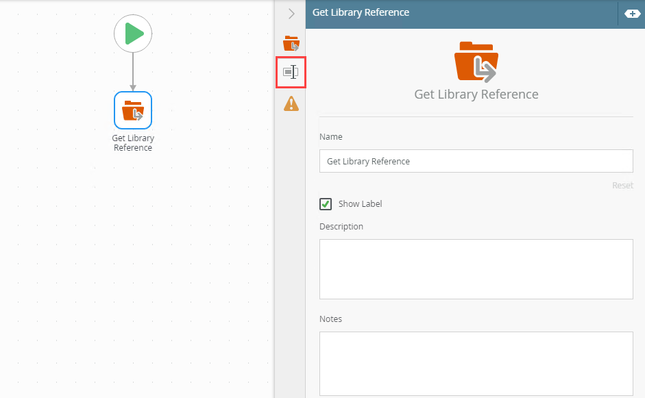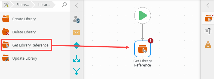 Drag the Get Library Reference step from the SharePoint category, Favorites bar, or the Recent category onto the canvas.