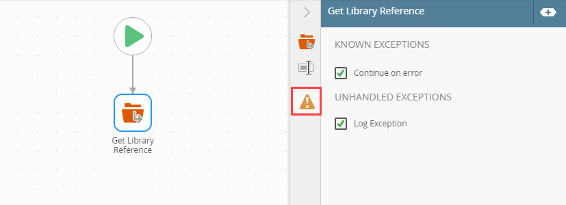 - The exceptions in the table above is an example of those available in Workflow steps. The exceptions available depend on the Workflow step used in the design canvas.