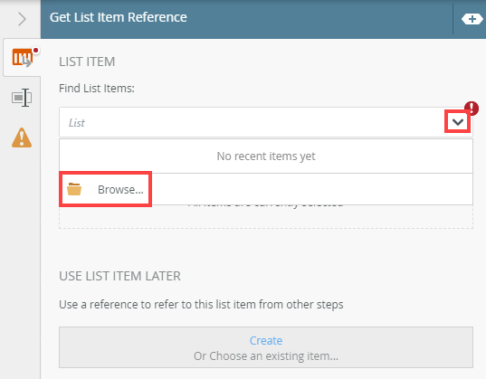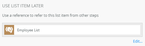 | Use List Item Later | Use this to create a reference to use from other steps within the workflow. |