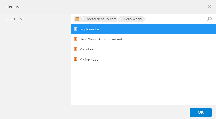Use this to browse to the list on a registered SharePoint Site Collection. |