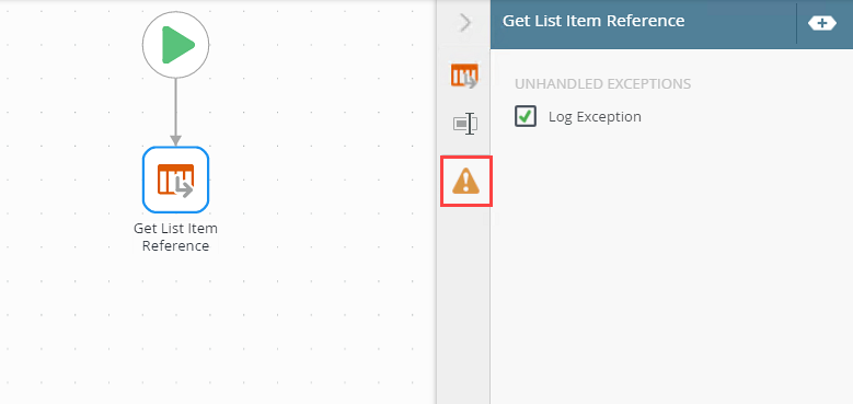 - Select the Get List Item Reference tab. Use this tab to configure the properties.