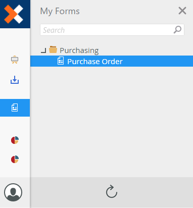 The My Forms list displays forms marked as Application Forms. Use Search to find a particular form if you have many application forms. Once you've found the form you need, click it to open and start using it.