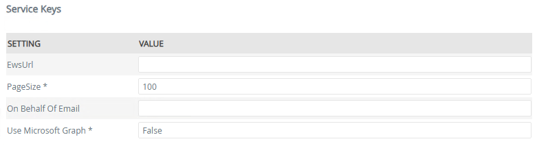 You must activate the Exchange Online feature to create an instance of this service type. See Exchange Online feature activation. The Exchange Online feature activation allows you to integrate with Microsoft Exchange Online or a Microsoft Exchange on-premises server.