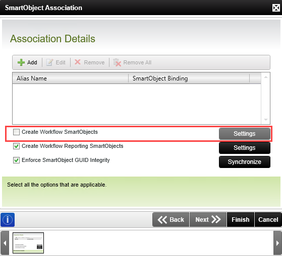 In addition, if workflows are deployed with the Create Workflow SmartObjects option selected, the service will create service objects for the selected items in the configuration of the Create Workflow SmartObjects screen, as specified by the workflow designer.