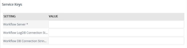| Workflow DB Connection String | Yes | Text |