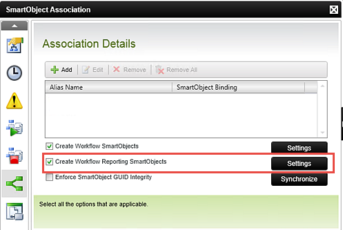 - You may want to limit the number of processes that generate Workflow Reporting SmartObjects, as it can cause significant overhead on the SQL server if a high volume of processes or process instances are expected, and it can also increase the amount of time taken to deploy the workflow definition.