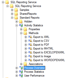 The SQL Reporting Service instance typically exposes multiple service objects for the reports discovered in the targeted SSRS server, grouping the reports into categories that reflect the folder structure on the SSRS server.