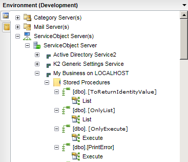 This will only return values for a single record, and not for a table or a list. When registering or refreshing the SQL Server service instance, ensure that the Use parameters for stored procedures service key is set to False. The Output parameter defined will then be added to the service object's properties. See K2 SQL Server broker: Stored procedures requirements for more background information.