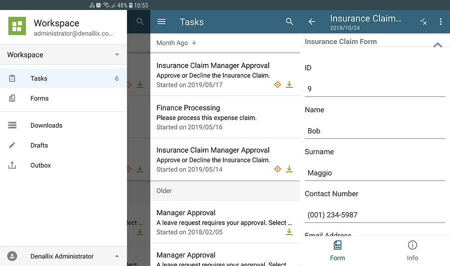 You can use the Workspace app for mobile devices to work with workflow tasks, open application forms, or share and redirect tasks to other users. For more information about the Workspace app for mobile devices, see the Workspace (Mobile) apps user guide.
