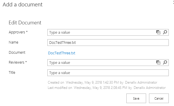 - Add a New document. Notice the Review Status and Approval Status rows are no longer visible.