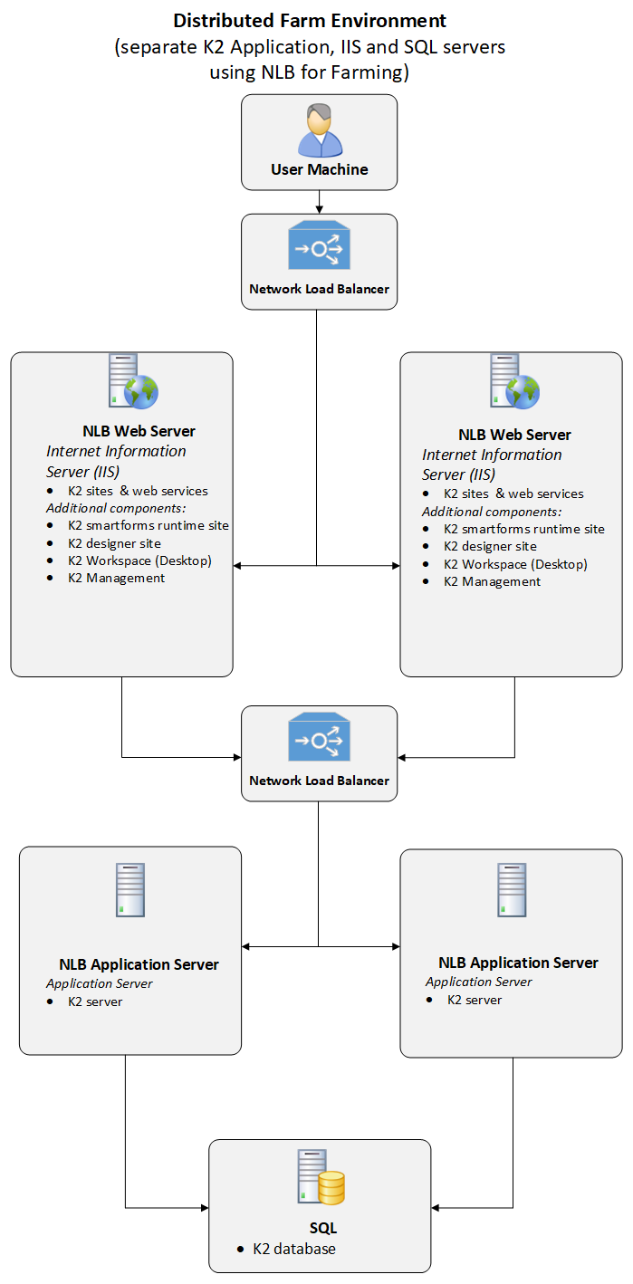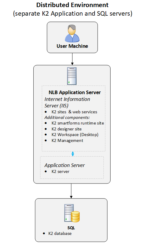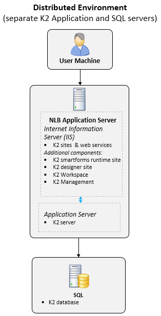 - K2 recommends you do not geographically separate the SQL Server from the application servers since this can introduce performance issues due to low bandwidth or latency between the K2 application servers and the SQL server.