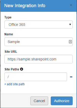 To add an Office 365 integration