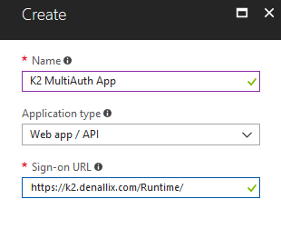 - Create an App in AAD for your K2 site and gather information for configurating K2.